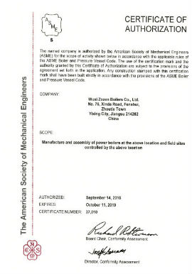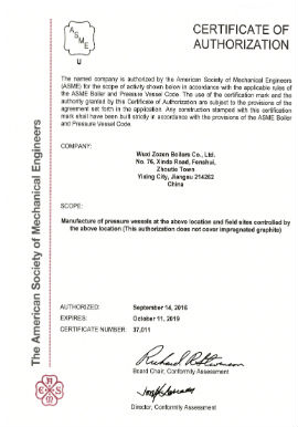 無錫中正鍋爐有限公司公司持有A級鍋爐制造許可證,BRⅡ級壓力容器制造許可證,美國ASME標準“S”(動力鍋爐)、“U”(壓力容器)許可鋼印,并全面通過ISO9001:2015國 際質量體系認證。